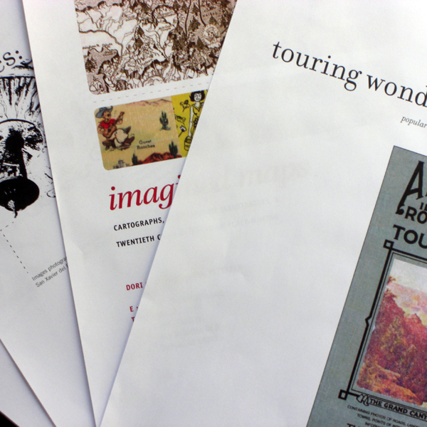 During my doctoral coursework, I wrote about a variety of subjects related to Arizona tourism and print ephemera: illustrations of the Kino missions, Tumacacori and San Xavier; maps as illustrations in Arizona Highways magazine; representation and identity in the American West; archival sources for illustrated maps; practicing tourism as a scholar and scholarship as a tourist. All of this written work is design work, too. During my first semester at ASU, I designed a document template with space for images and captions down the left-hand side of the page, and body text with footnotes down the right. Brenda Laurel (now at California College for the Arts) calls this designwriting, a term I have adopted to describe my own work.